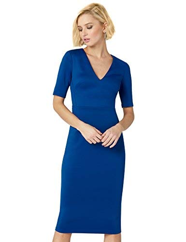 Marca Amazon - TRUTH & FABLE Vestido Midi Ajustado Mujer, Azul (Blue), 36, Label: XS