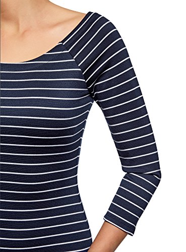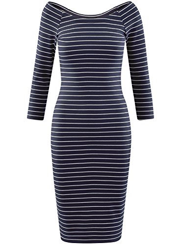 oodji Ultra Mujer Vestido Ajustado con Escote Barco, Azul, ES 36 / XS