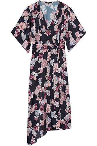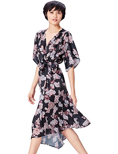 Marca Amazon - find. Vestido Midi Cruzado Mujer, Rojo (Red Mehrfarbig), 38, Label: S