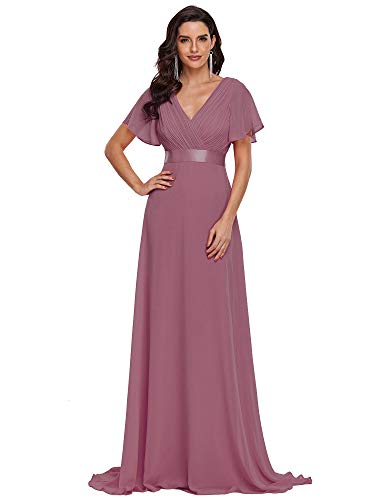 Ever-Pretty A-línea Vestido de Fiesta Cuello en V Manga Corta Gasa Corte Imperio para Mujer Orquídea 36