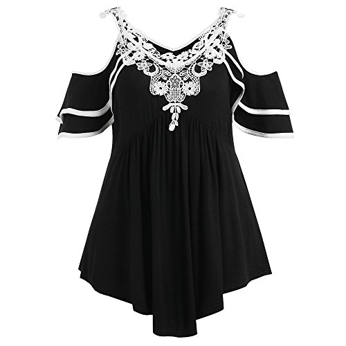 Camisetas Mujer SHOBDW Dia de la Mujer Verano Patchwork De Encaje Casual Ahuecar Volantes Manga Corta Suéter De Cuello De Tortuga Linda Blusa Floral Camiseta Blanca para Mujer (5XL, A-Blanco)