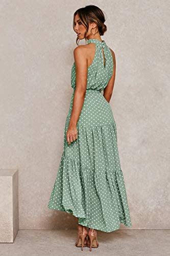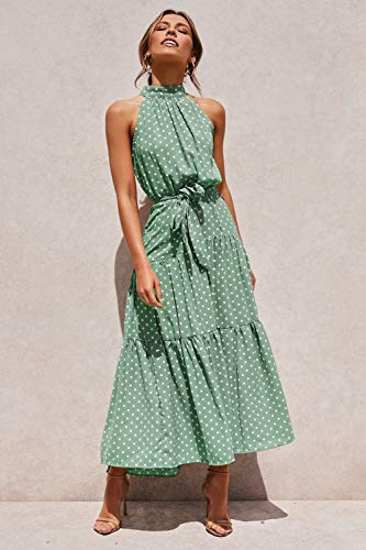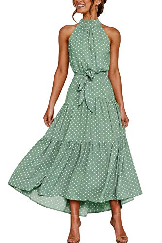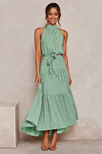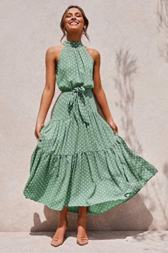 Vestido Mujer Bohemio Largo Verano Playa Fiesta Floral/Polka Dot Maxi Vestidos Cóctel Falda Larga con Cinturón Puntos Verdes M