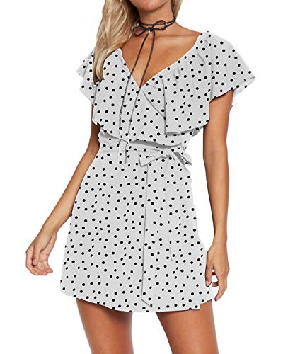Yoins - Vestido de verano para mujer, corto, cuello en V, sin hombros, elegante, vestido de playa, minivestido de fiesta 09 XXL
