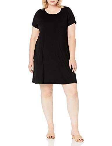 Amazon Essentials Vestido de Manga Corta con Cuello Redondo-Tallas Dresses, Negro, XXL Grande