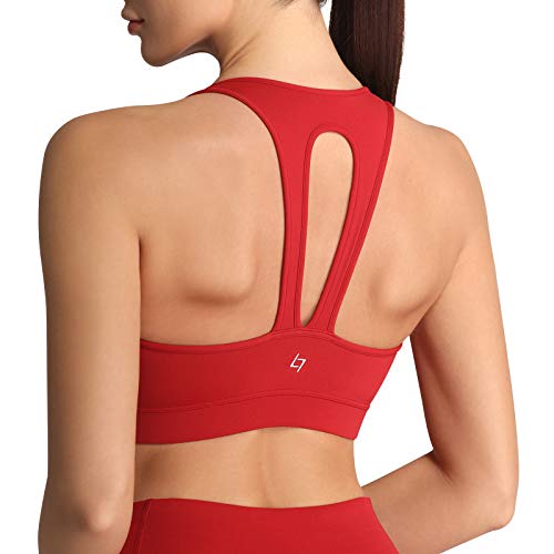 FITTIN Sujetador deportivo con espalda cruzada, sujeción fuerte, espalda cruzada acolchada, pechos grandes para yoga, entrenamiento, fitness rojo XL