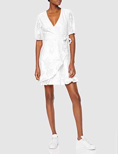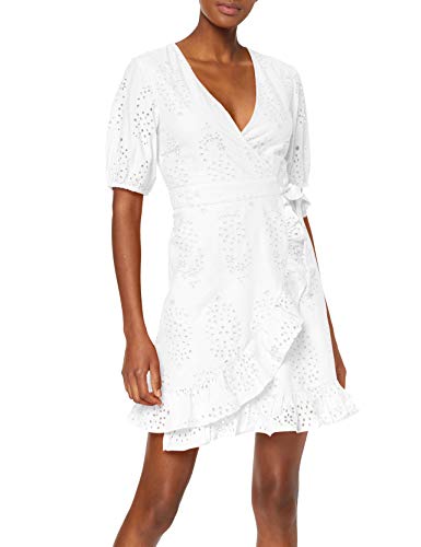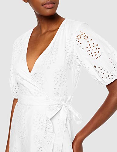 Marca Amazon - find. Vestido Corto Cruzado de Algodón Mujer, Blanco (Bright White), 38, Label: S