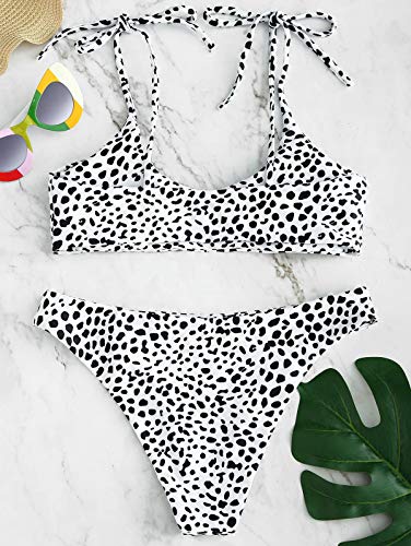 ZAFUL - Conjunto de Bikini de Dos Piezas para Mujer, Parte Superior Acolchada con Tirantes Ajustables, Parte Inferior de Corte Alto (WeiĆ-a, S)