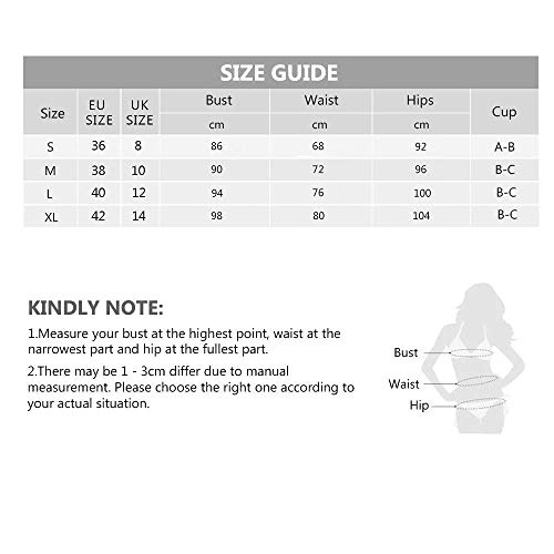 - Material elĆ”stico de alta calidad, hace que el bikini se ajuste a tu cuerpo fĆ”cilmente. Tops de bikini con sujetadores acolchados extraĆbles, aseguran el soporte y la forma.