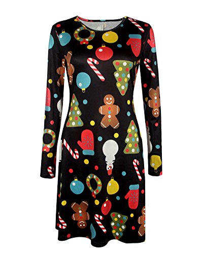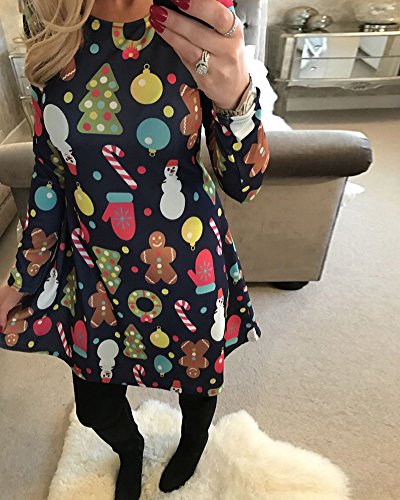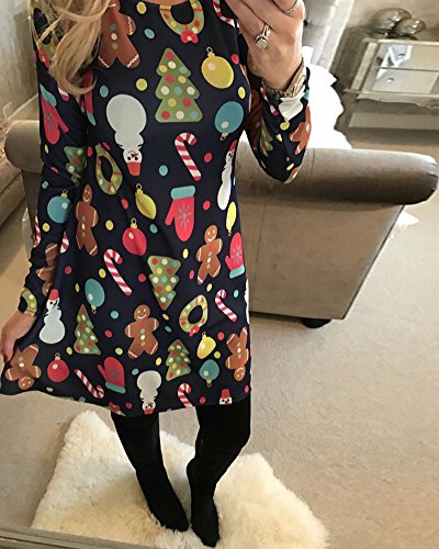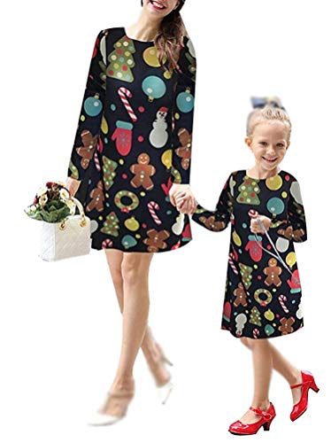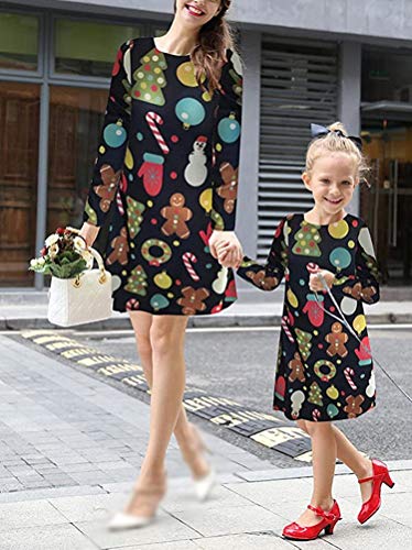 Minetom Mujeres Niñas Navidad Vestido Blusas Mangas Largas Ropa Impresión Calabaza Nieve Camiseta Camisa Tapas Ocasionales Swing Dress Estilo 2 130(Chica)