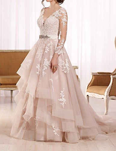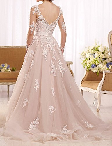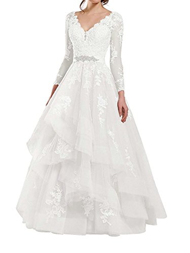 Vestido de Boda Vestido de Novia Mujer Vestidos de Fiesta Largo Manga Larga Tul V-Cuello