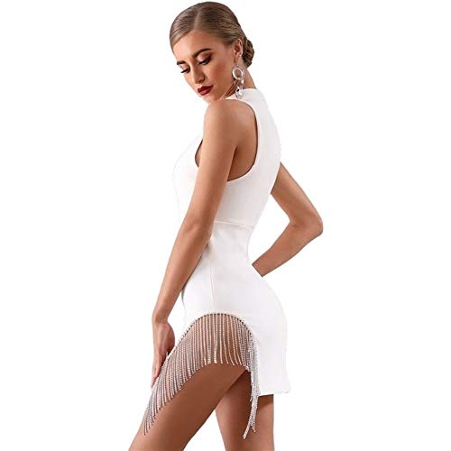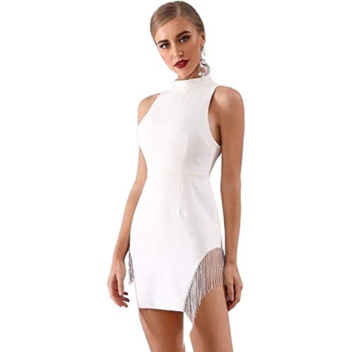 ZALE - Vestido negro para mujer, vestido de fiesta con diseño de estrella, color negro, para mujer, chaleco sin mangas, borlas, zapatos de vestir para mujer para baile fiesta temperamento, Blanco, XS
