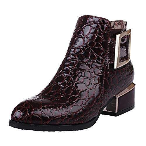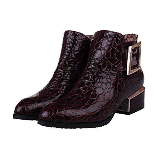 Botas Mujer Invierno 2019 Vintage Tacón Grueso Hebilla Botines de Cuero Puntiagudo Tacón Alto Romana Zapatos de Vestir Zapatos Casuales 35-43 riou