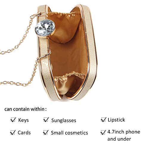 - Diseño: Estructura de metal hueco + piel sintética de alta calidad; Dos cadenas con diferentes longitudes que son fáciles y convenientes para que usted las lleve como una mini bandolera o una bandolera cruzada. El cierre superior está tachonado con cristales de pedrería para hacer que su brillo sea más brillante.