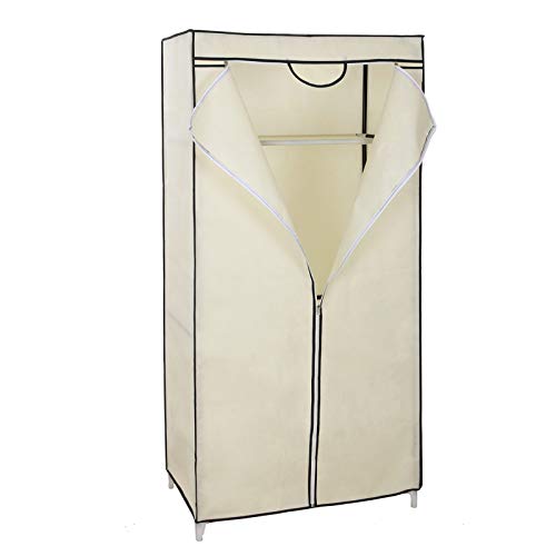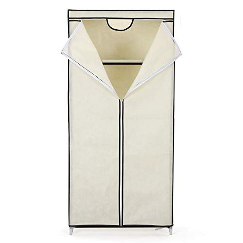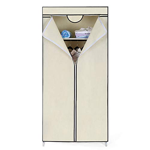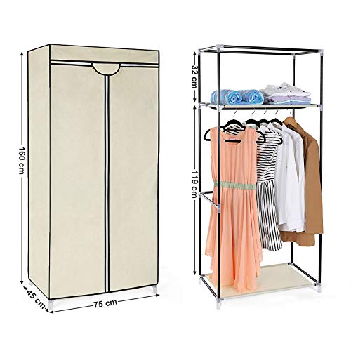 SONGMICS Armario de Tela, Armario Plegable con Barra de Colgar, Perchero Individual, Organizador de Bolsas, Juguetes, Zapatos, Sala, Dormitorio, 75 x 45 x 160 cm, Beige RYG83M