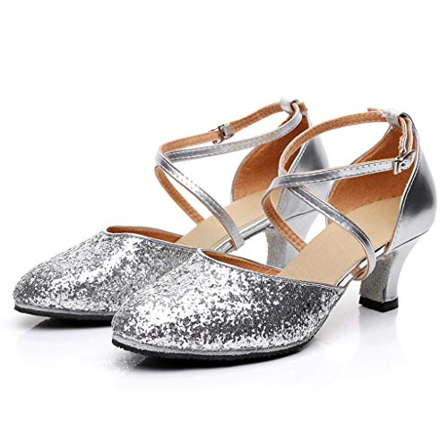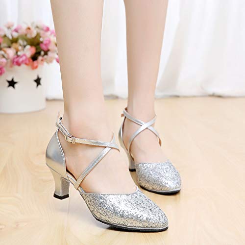 Zapatos de Baile/Zapatos Latinos para Mujer Casuales Zapatillas Hebilla Romanas Calzado de Danza Tacón Alto/Medio Mujeres Zapatos Vestir de Fiesta riou