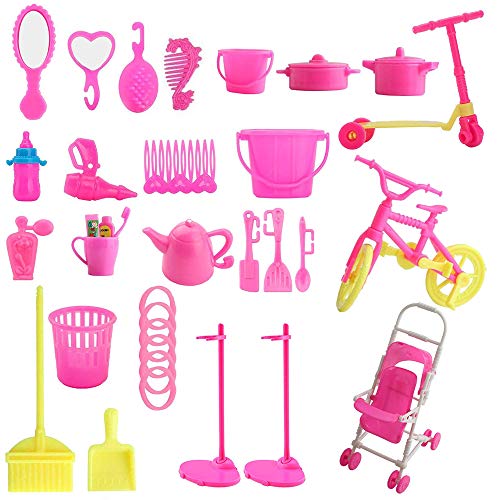- EL PAQUETE INCLUYE: 130 piezas de accesorios para muƱeca Dolls (Doll no incluido). Los varios accesorios de las muƱecas incluyeron la ropa, zapatos, suspensiones, accesorios de la joyerĆa. Adecuado para muƱecas Dolls. Ā”Es un regalo muy lindo para tu pequeƱa!