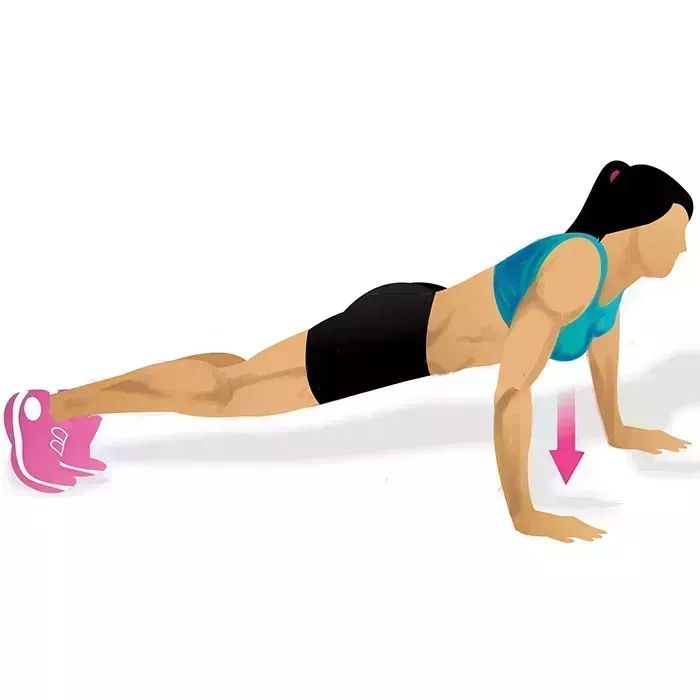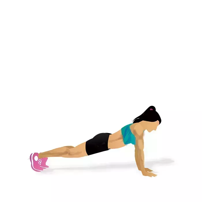 - Baja el cuerpo flexionando los codos hasta casi tocar el suelo.
