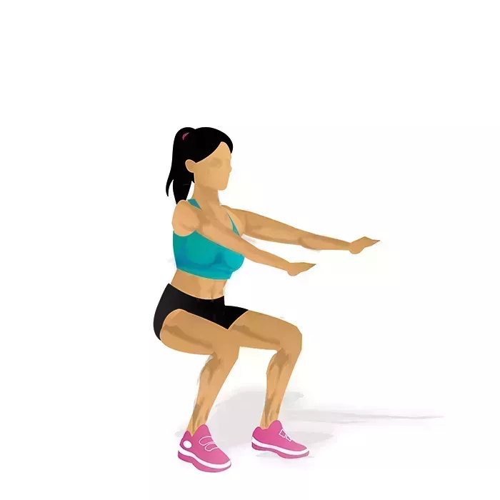 - Vuelve a poner los pies en la posición de sentadilla desde la posición de flexión.