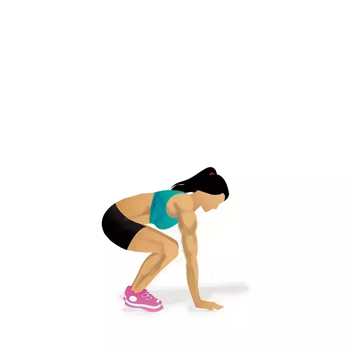 - Ponte en posición de cuclillas con las manos en el suelo.