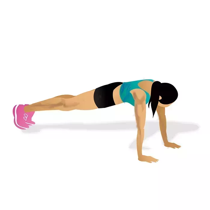 Posición de inicio: Comience este ejercicio en posición de flexión de brazos. Dobla una pierna y lleva la rodilla por debajo de la cadera.