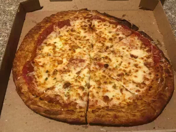 La pequeña tarta de queso de 12 pulgadas costaba 12,99 dólares, pero era una sólida pizza de reparto, con una masa más esponjosa que los fans de la masa gruesa pueden preferir.