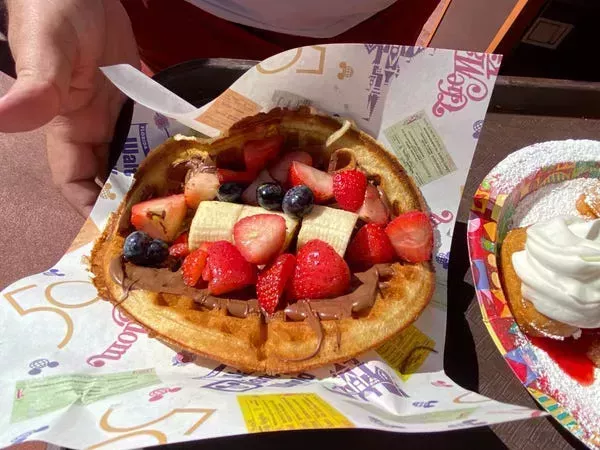 A continuación, dirígete a Sleepy Hollow para probar uno de los sándwiches de gofre de fruta fresca. Una vez más, las porciones son grandes y puedes compartirlo con un amigo o dos por 8,49 dólares.