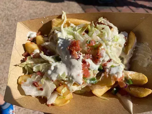 Si necesitas un tentempié para coger energía para las compras de souvenirs en Disney Springs -el distrito de entretenimiento, restauración y compras de entrada gratuita en Disney World- empieza con las patatas fritas cargadas del Daily Poutine.