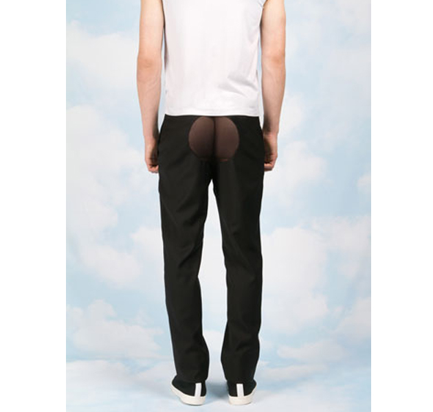 Pantalones con el culo al aire, de 250$, otros con unas manos en la entrepierna (nos recuerdan a esas camisetas bastas con unas manos en la zona de los pechos),...
