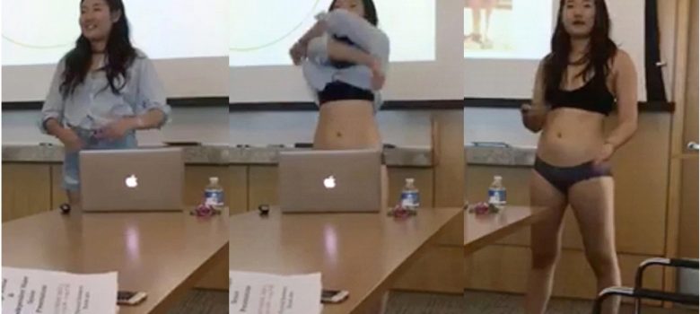 Soy más que una mujer... una vez se había quedado en ropa interior, la estudiante comenzó con su discurso... esta mujer leyó su tesis...