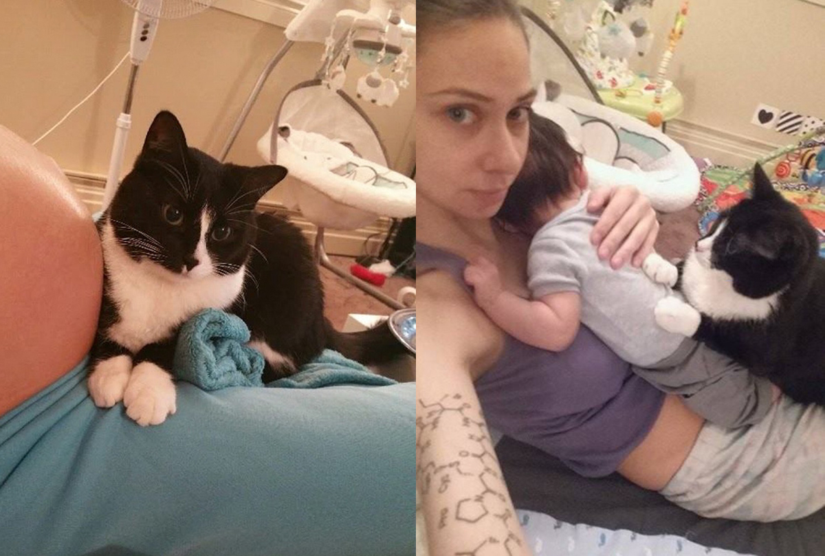 Las fotos son puro amor... las fotos de como panda le da cariño a la barriga de su dueña y después al bebé son realmente adorables...