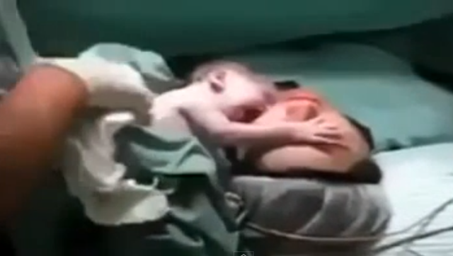 A pesar de acabar de nacer, este bebé sabe perfectamente quien es su madre y no piensa separarse de ella, por mucho que se empeñen las enfermeras del...
