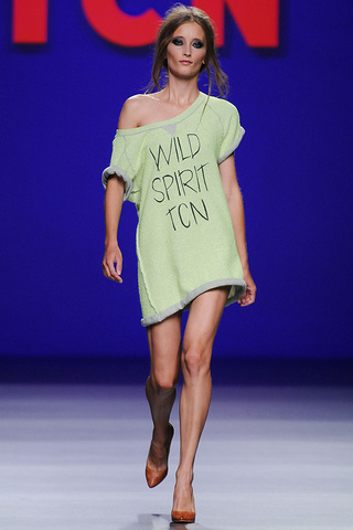 Pero volviendo a la colección, hay que mencionar las piezas flúor que abrieron el desfile. Sí, si pensabas haberte librado de la tendencia, que sepas que vuelve el próximo verano, y hasta en la ropa interior y de baño nada menos. Lo mejor del comienzo del desfile es que las luces estaban apagadas, pero las prendas eran tan brillantes que relucián en la oscuridad. Muy raveras, la verdad, o como a Totón Comella -diseñadora de la firma- le gusta calificarlas "retro-futuristas".