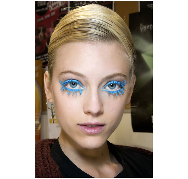 - A lo loco y como Twiggy. Moncler Gamme Rouge, la línea más chic apostó por un color celeste en los ojos de sus modelos. Todo en su look era azul: sombras, eyeliner y máscara de pestañas. No para todos los días, sino para la más atrevidas que disfrutan del lado más original y único de la vida.
