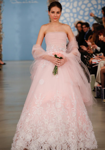 Sorprendentemente, el color será uno de los puntos fuertes en los vestidos de novia. Se llevan no sólo los tonos pastel (celeste como las propuestas de Oscar de la Renta, o amarillo como en Monique Luhillier), sino que el negro llega a estas prendas tan especiales, eso sí, sólo en detalles y complementos, tales como los guantes vistos en el desfile de Vera Wang, que los propone como contrapunto al minimalismo de sus vestidos, rompiendo toda clase de clasicismo. Además, nos los muestra en materiales tan sexis como el cuero, que llama la atención por lo arriesgado de la propuesta.