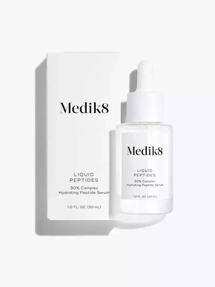 Cuando la flacidez y las líneas de expresión se hacen más evidentes, su piel se merece un tratamiento reafirmante como los Péptidos Líquidos de Medik8. Los péptidos son estrellas en el mundo del cuidado de la piel por su capacidad para aumentar la elasticidad, lo que hace que la piel tenga un aspecto más joven y terso.
