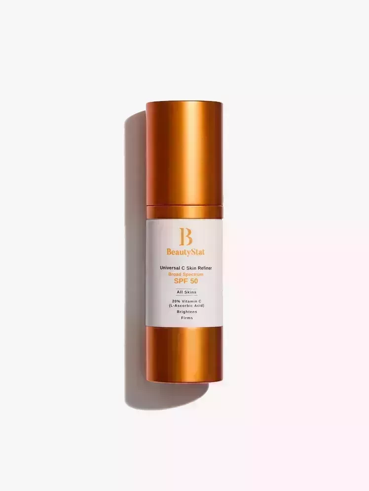 El protector solar mineral SPF 50 Universal C Skin Refiner de BeautyStat tiene los beneficios añadidos de la vitamina C estabilizada, un antioxidante conocido por iluminar la piel y unificar el tono. Además de sus propiedades antioxidantes, este protector solar también tiene un acabado tintado que se difumina de forma transparente en todos los tonos de piel.