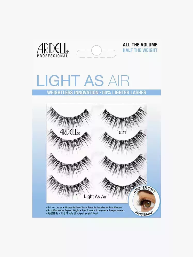 Para redondear tu look de maquillaje, completa tus ojos con un par de pestañas postizas espectaculares, como las Light As Air Lashes de Ardell. Cada pack de cuatro contiene un juego de pestañas postizas muy ligeras que podrás llevar todo el día sin que se caigan de su sitio.