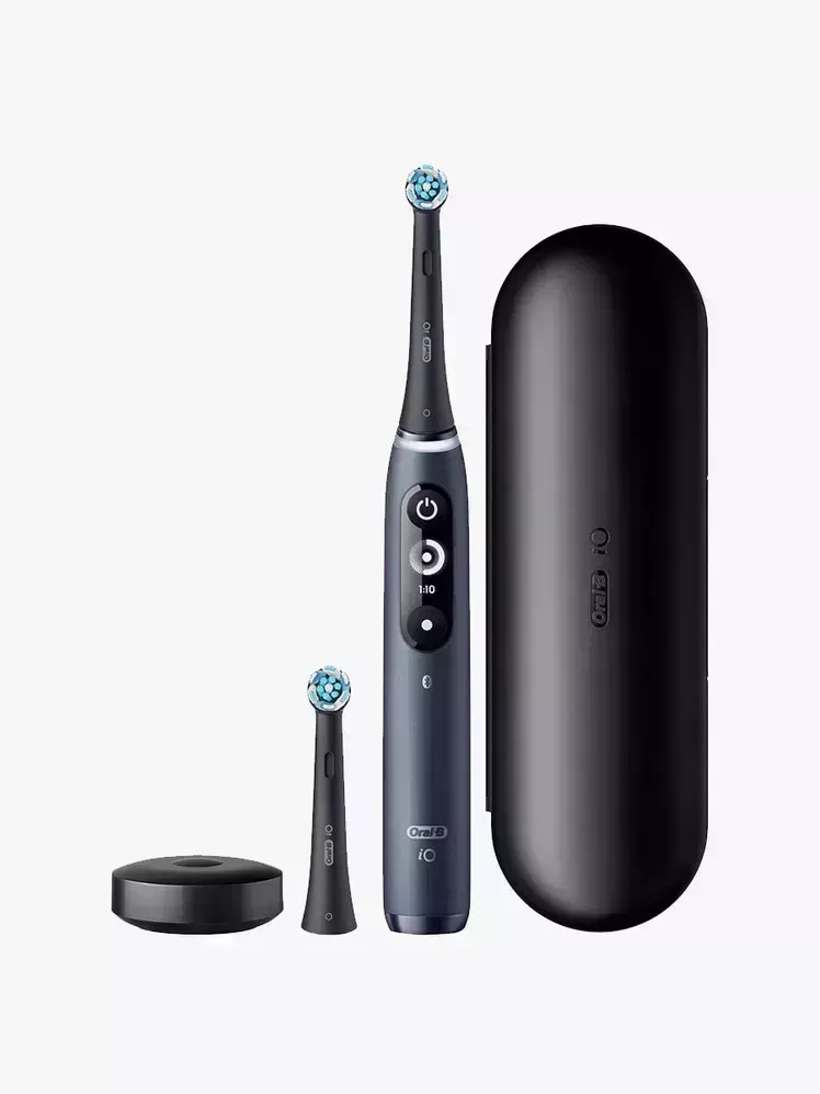 El cepillo de dientes eléctrico iO Series 7 de Oral-B es básicamente el Rolls Royce de los cepillos de dientes. Este elegante cepillo de dientes está equipado con múltiples ajustes de cepillado, conectividad Bluetooth y un estuche para facilitar los viajes.