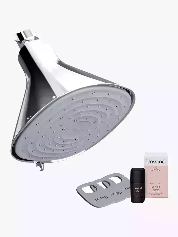 Lleve su espacio de ducha a niveles de spa con el cabezal de ducha filtrado de Canopy. El cabezal de ducha de la marca de cuidado del hogar reduce elementos del agua como el cloro, los metales pesados y el sulfuro de hidrógeno que los cabezales de ducha habituales no eliminan. Además de sus propiedades de filtración, la alcachofa de ducha filtrada también incluye tres accesorios aromáticos para dar un toque de aromaterapia a sus momentos en la ducha.