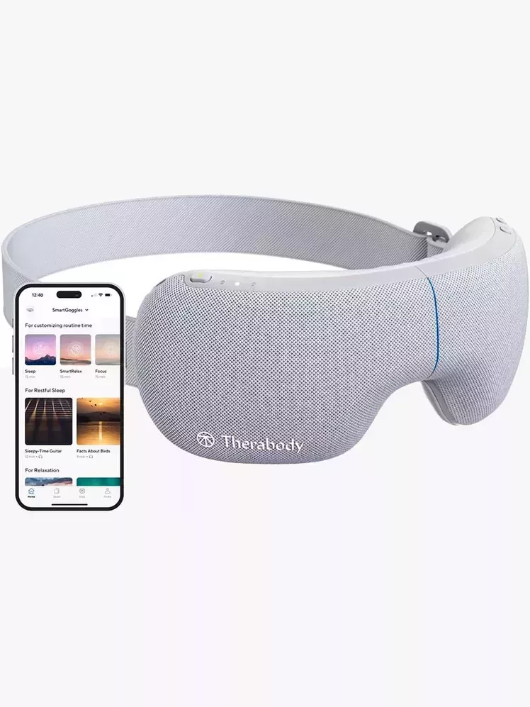 Cuando las migrañas se vuelven duras, ponte las SmartGoggles de Therabody. Estas gafas conectables por Bluetooth proporcionan mucho más que calor y vibraciones: Incorporan un sensor que analiza tu pulso y personaliza los patrones de vibración para reducir tu frecuencia cardiaca.