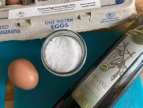 También es necesario una buena cantidad de aceite de oliva de calidad decente, que cubrirá la sartén y le ayudará a freír el huevo hasta convertirlo en una obra maestra encrespada, chisporroteante y crujiente, con una yema cocinada a la temperatura que desee.