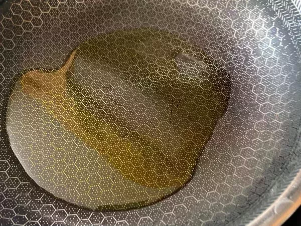 Para esta receta, pon el fuego de la cocina a medio y añade un chorrito de aceite de oliva a la sartén. Espera a que brille, así sabrás que el aceite está caliente.