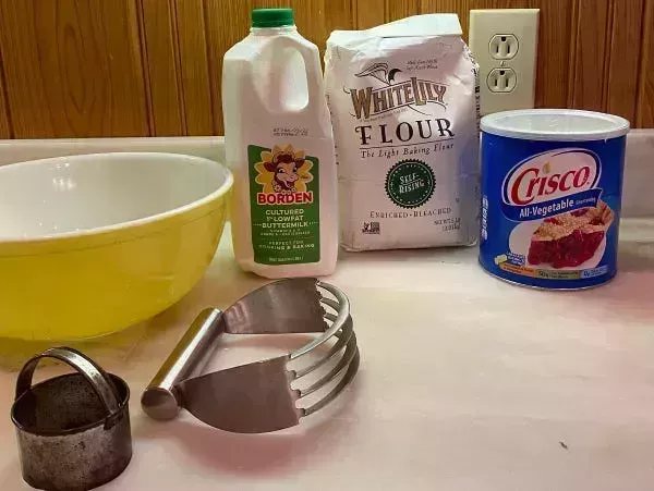Todo lo que necesita es harina auto-levantada White Lily, suero de leche y Crisco.