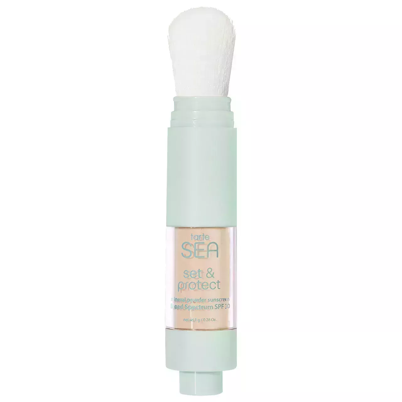 tiene partículas que reflejan la luz y contrarrestan la apariencia de las ojeras, mientras que los azúcares de avena suavizan la piel y la vitamina E actúa como emoliente. Y, por supuesto, la maracuyá es la fuente rica en ácidos grasos de la vitamina C que ayuda a reafirmar, iluminar y suavizar las ojeras.Reaplicar el protector solar sobre el maquillaje puede ser una lucha, pero los polvos de sol hacen que la tarea sea un poco más factible. Siempre que seas minuciosa con la aplicación y hagas varias pasadas para asegurarte de que cubres cada centímetro de tu cutis, el protector solar en polvo mineral Sea Set & Protect contiene FPS 30 a través de filtros de titanio y óxido de zinc y también ayuda a mantener el maquillaje en su sitio.