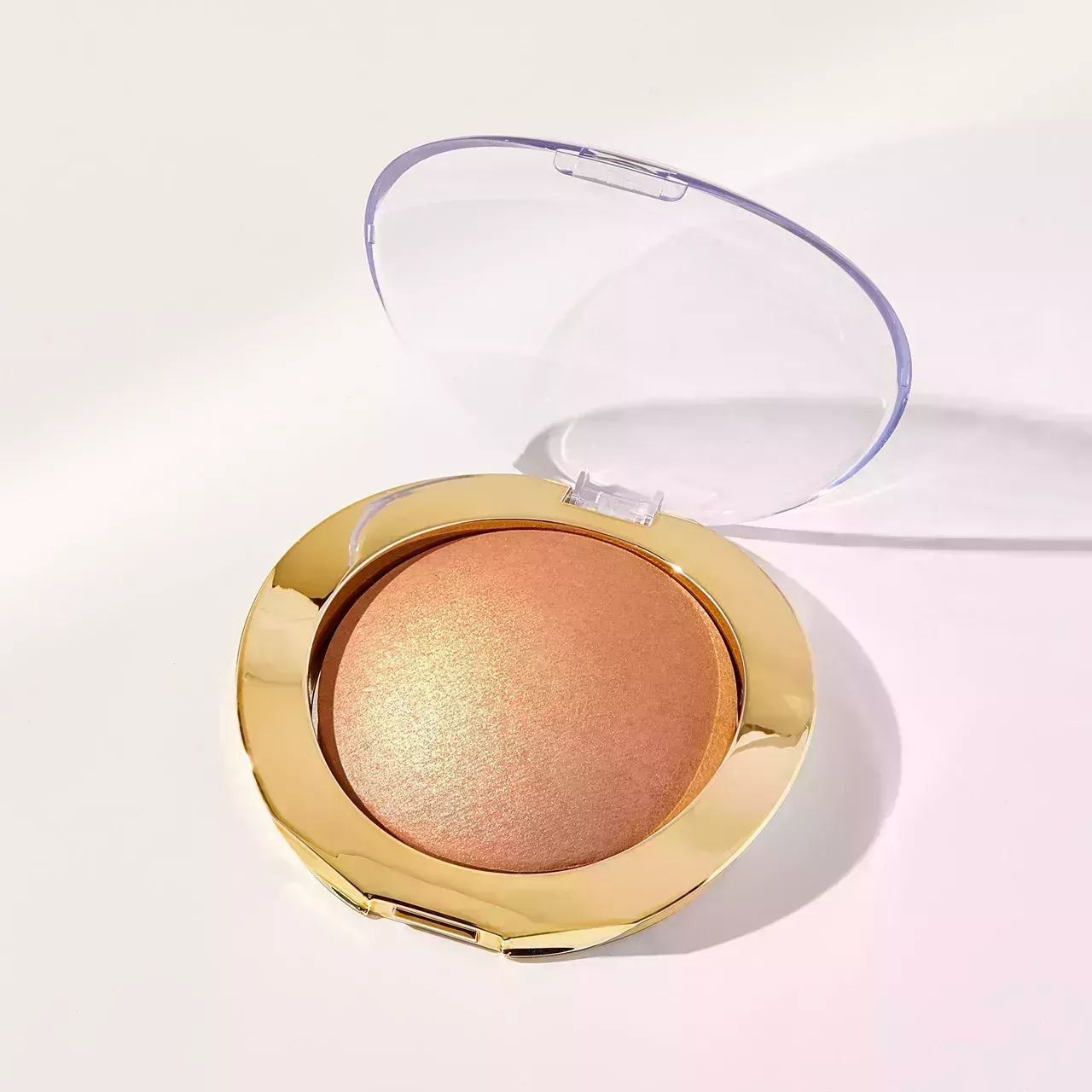 de Tarte se ha relanzado con gran éxito en tres tonos encantadores: Flush (rojo baya en la foto), Tipsy (coral con tintes rosados) y Exposed (bronce luminoso). Esta barra de acabado húmedo es muy fácil de aplicar y se puede difuminar fácilmente el pigmento con los dedos para obtener un rubor de aspecto natural.Para añadir calidez que también ayuda a difuminar la apariencia de los poros, Shape Tape Glow Bronzer te respalda. Con partículas de diamante que reflejan la luz, aceite de jojoba hidratante y arcilla amazónica que absorbe la grasa, este polvo mantendrá tu cutis fresco y brillante.