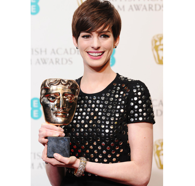 Anne Hathaway, haciendo un poco patria en los Bafta, optó por un diseño de Burberry, que para eso se celebraba en la capital del Reino Unido la entrega de premios. Negro y con detalles metálicos, la actriz que se llevó a casa uno de los premios de la noche (Mejor actriz Secundaria) y fue, sin dudarlo, una de las mejores vestidas de la noche.