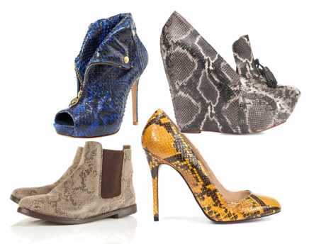 El estampado de serpiente también ha estado muy presente en esta temporada, pero se que hay muchas que le tienen animadversión. Por un lado están aquellas que tienen pánico a este reptil (es el caso de mi madre) y es sólo ver el dibujo de su piel, que se ponen a temblar. Y por otro lado están aquellas que asocian este print con lo hortera, ya que ha sido desde hace muchos años patrimonio de gente sin demasiada clase. A mi me gusta en zapatos y usado con aún más cuidado que el de leopardo. Lo mejor de esta piel es que la puedes encontrar en muchos juegos de colores.