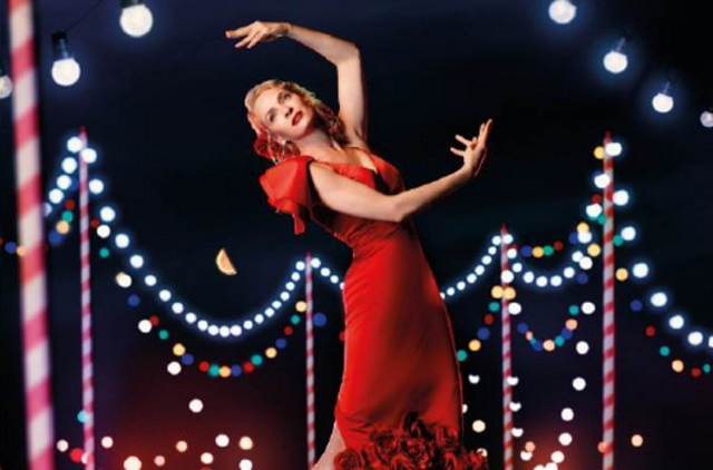 Esta idea de mostrar cómo se vive la fiesta al rededor del mundo, ha llevado al calendario a mostrar cómo sería si una rubísima y flamenquísima Uma Thurma se plantara andando entre casetas de la feria sevillana. No han podido pensar en nadie mejor que en la diseñadora VIcky Martin Berrocal a la hora de vestir a la actriz, pues con uno de sus diseños se ha transformado por completo, vamos que no nos extrañaría que le hubiera cogido el gusto a este rollo y viéramos a de verdad en la feria de Abril de este año a Uma Thurman vestida de flamenca por Vicky Martin tal y como en el Calendario Campari.