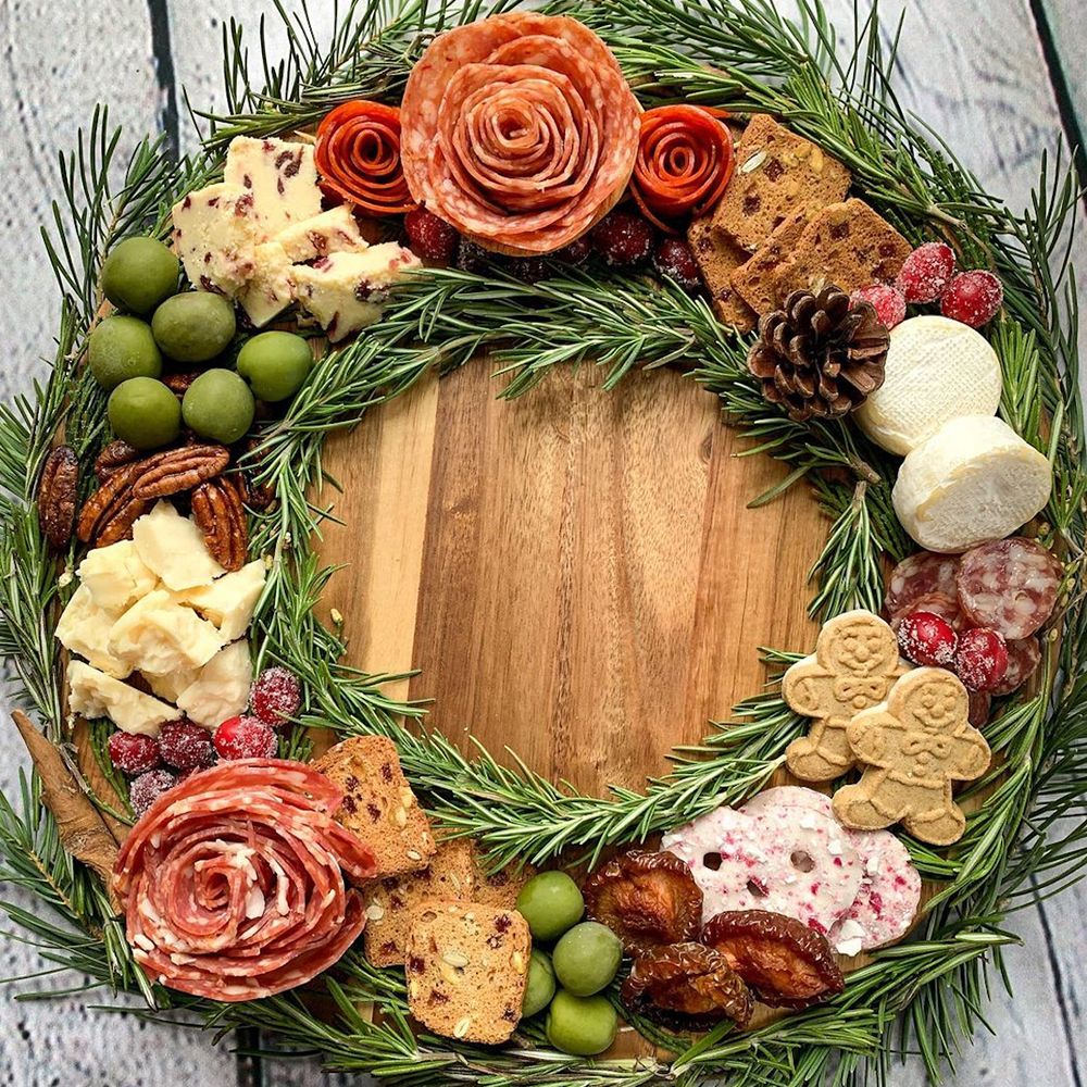 - Para hacer el clásico aperitivo más festivo, puedes subirte a la tendencia de la corona de charcutería que añadirá algo de espíritu navideño a la pizarra.