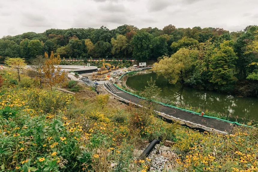 Ahora, el arroyo se reabre a la luz, con su curso lleno de rocas que corre junto a la piscina-pista. La vista desde el arco se desplegará como originalmente imaginaron los diseñadores – Frederick Law Olmsted y Calvert Vaux – con el flujo del arroyo hacia la calma del meer enmarcado por árboles.